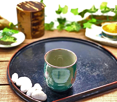 九谷焼の湯呑の設え