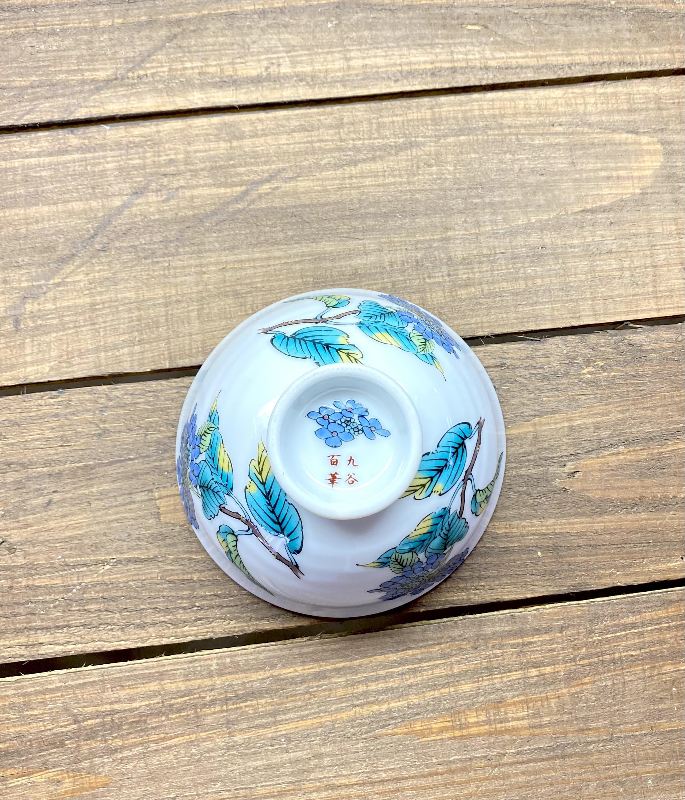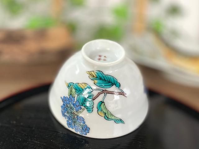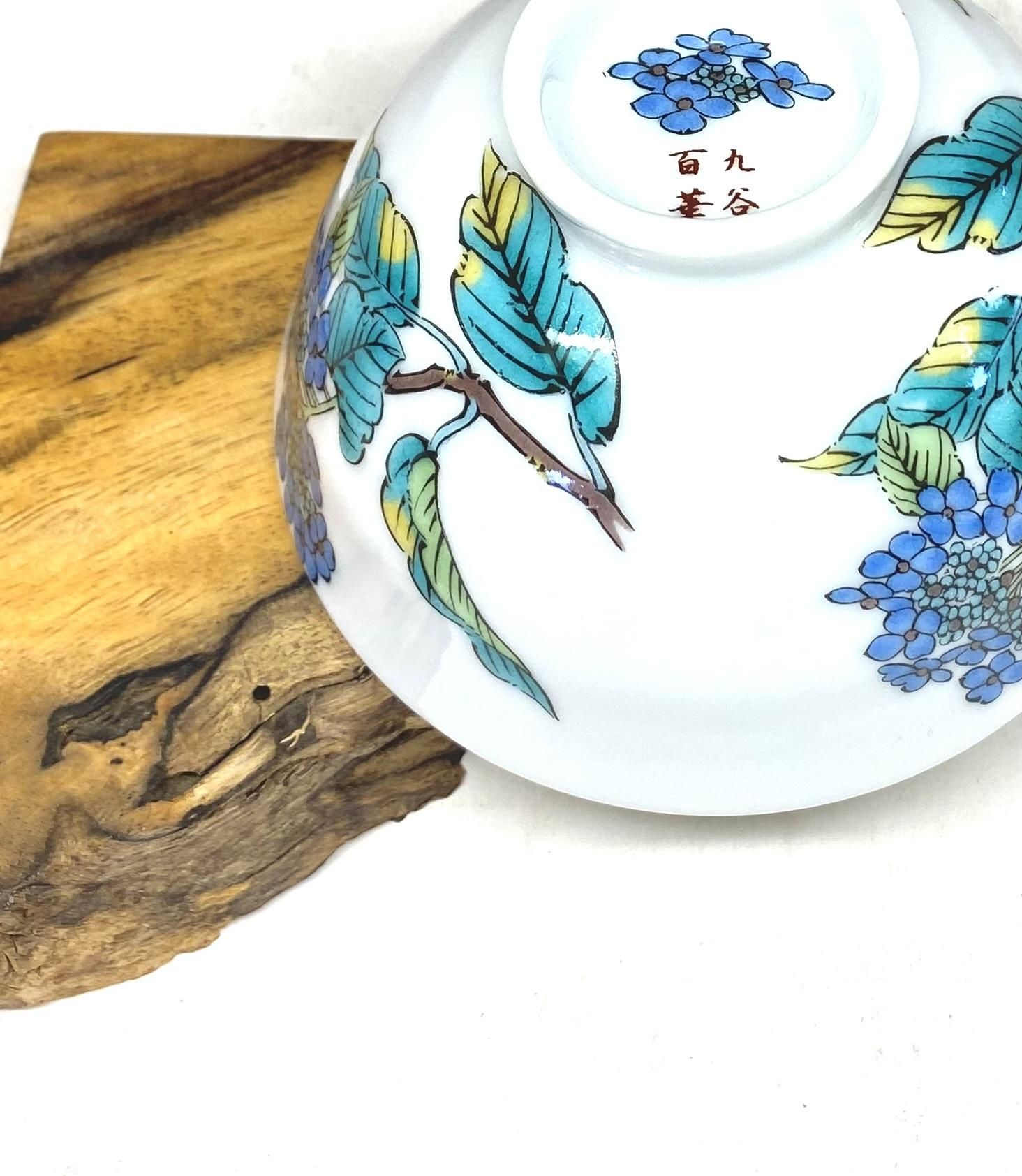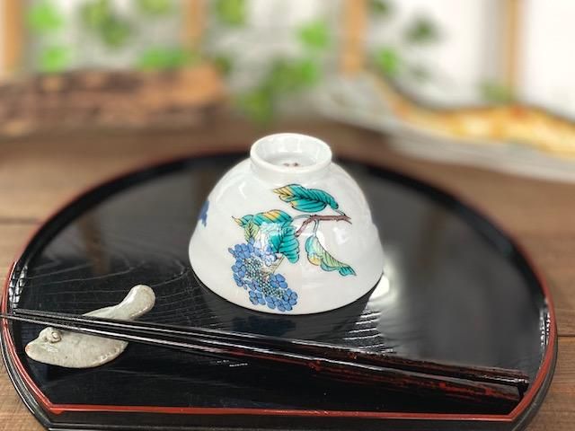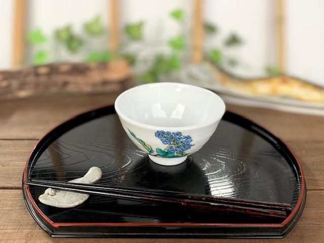 九谷焼 飯碗 茶碗 磁器 軽量 紫陽花 中裏絵