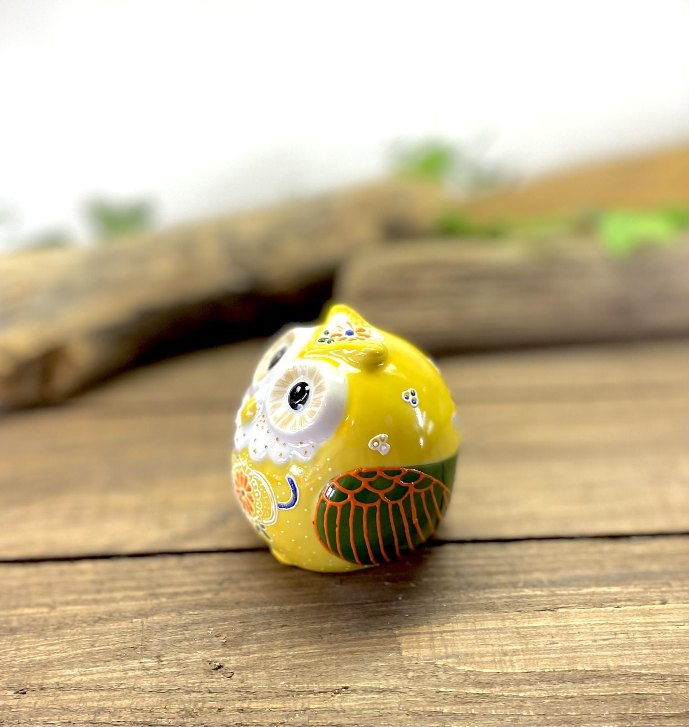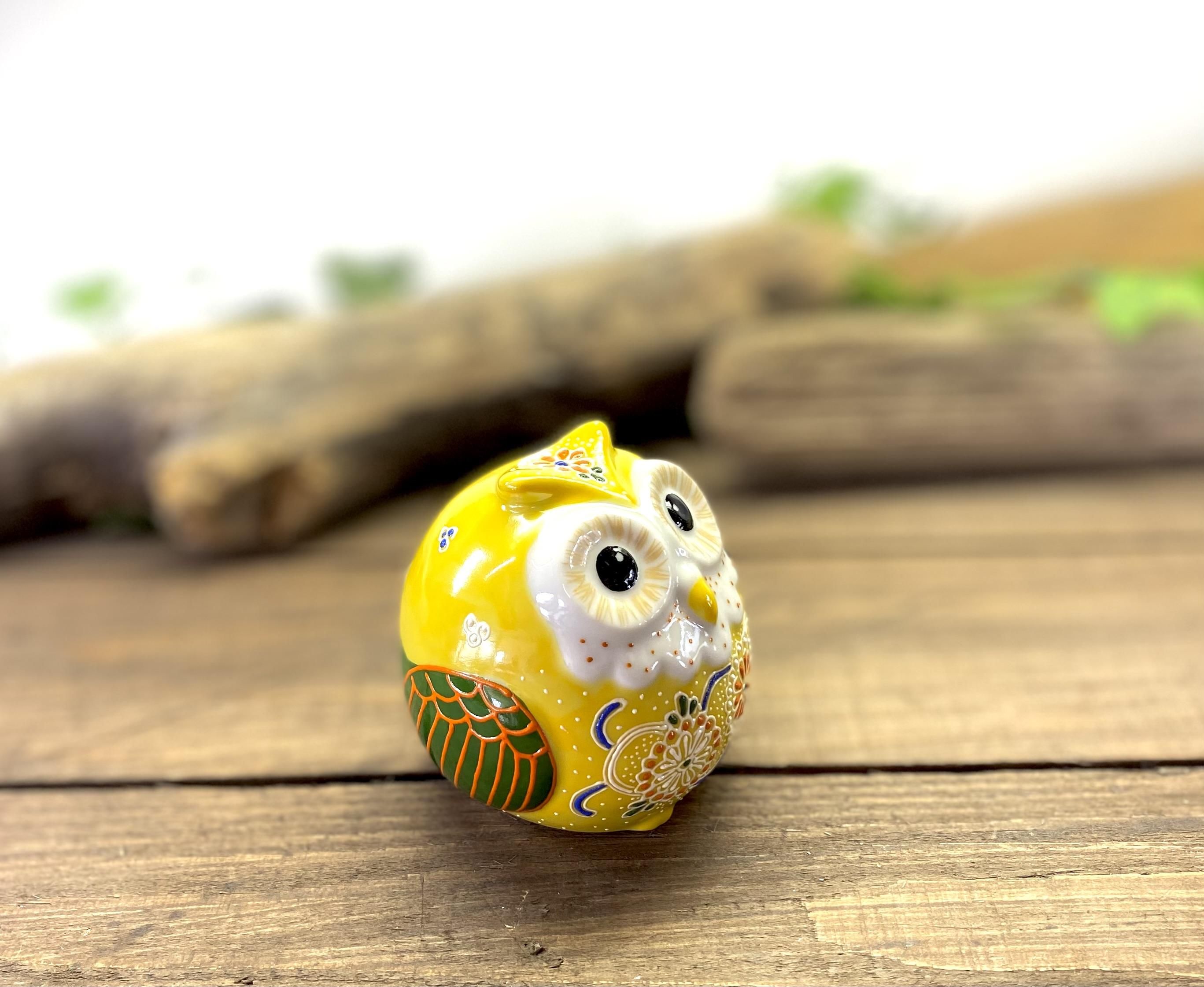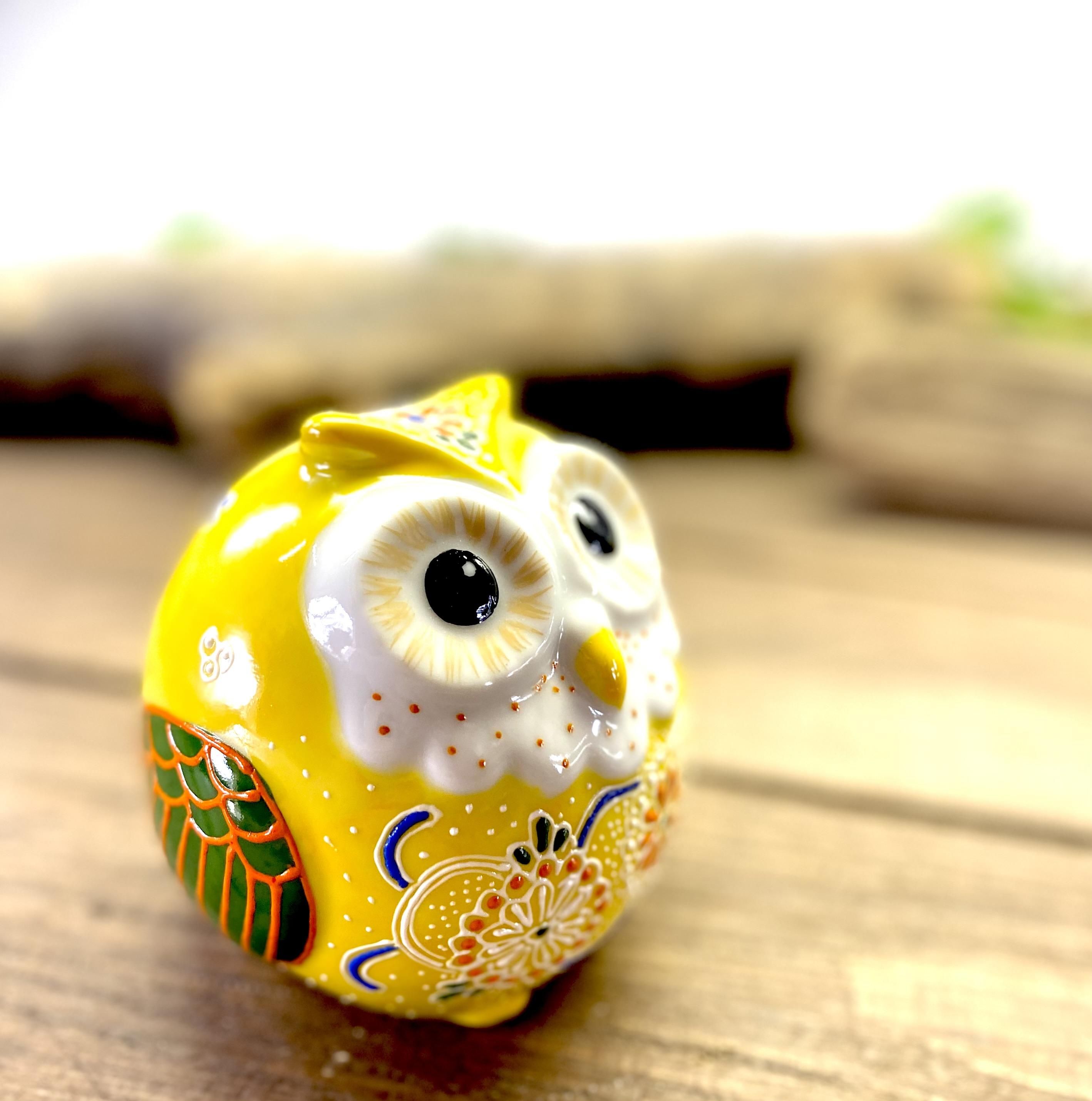 九谷焼 フクロウ ふくろう 幸運 置物 デコ盛 黄 2.5号
