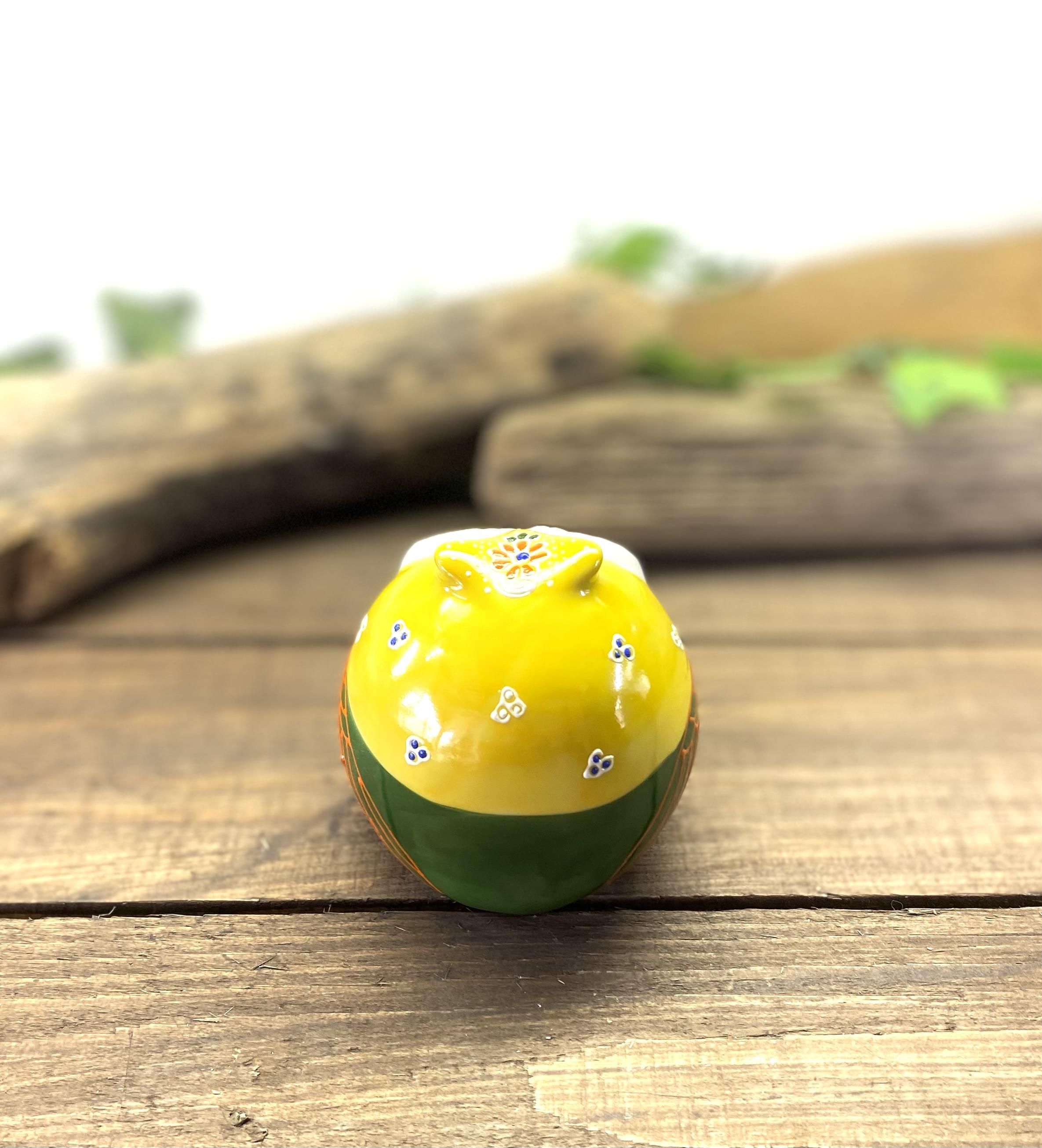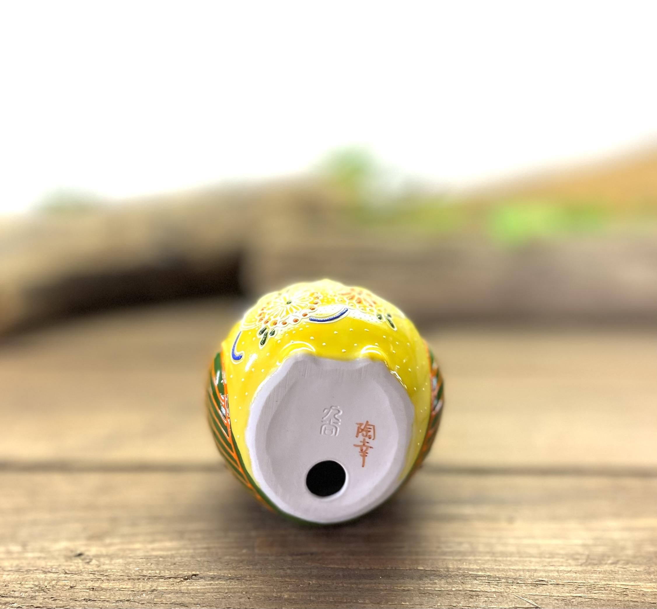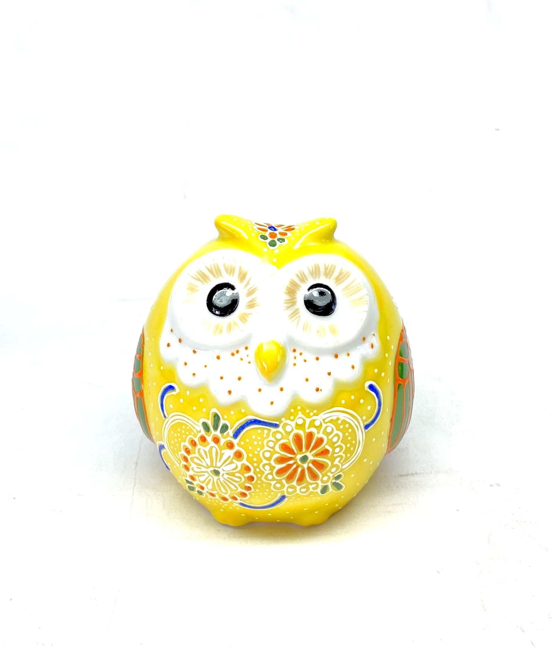 九谷焼 フクロウ ふくろう 幸運 置物 デコ盛 黄 2.5号