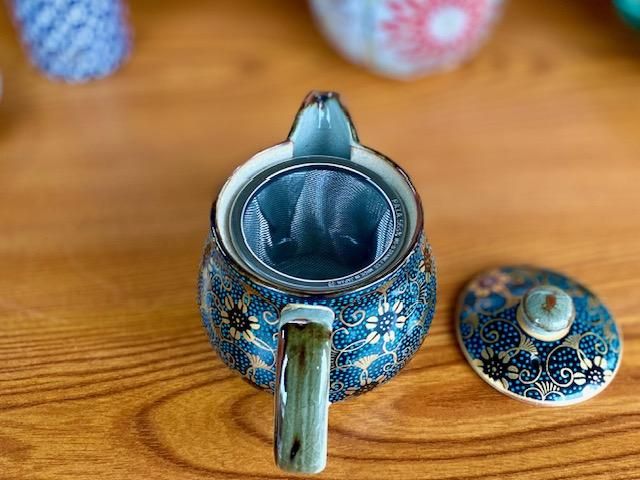 九谷焼の青粒豪華なお茶・紅茶と多用にご利用頂ける急須です。茶漉しが奥まであり安心です。