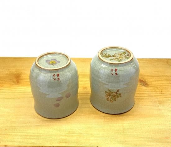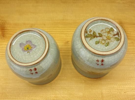 九谷焼 夫婦湯呑 ソメイヨシノ&しだれ桜 裏絵