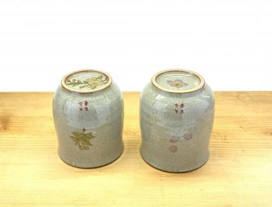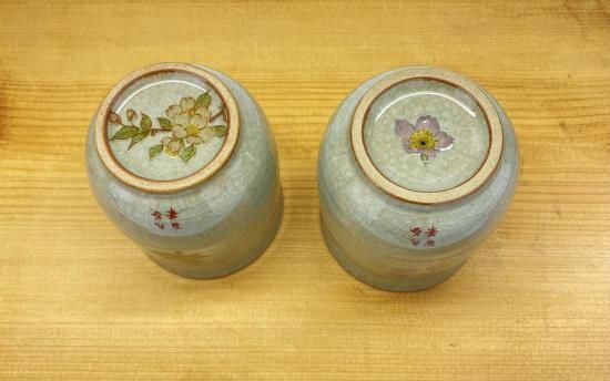 九谷焼 夫婦湯呑 しだれ桜&ソメイヨシノ 裏絵