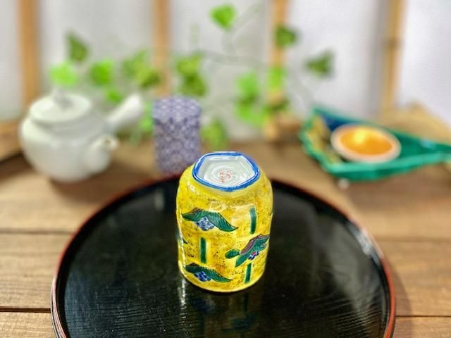 九谷焼 湯呑 湯飲み 小 金糸梅に鳥 裏絵